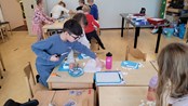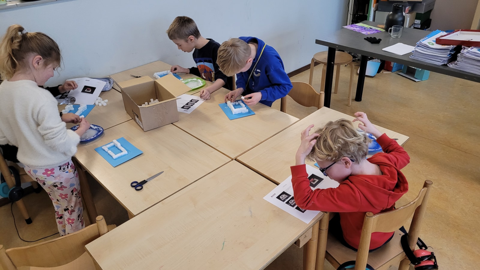 Vanmorgen zijn we aan de slag gegaan met het metselen van huisjes. De huisjes zijn gemaakt van suikerklontjes en het cement van poedersuiker en water. Sommige kinderen hebben even stiekem geproefd van het cement!